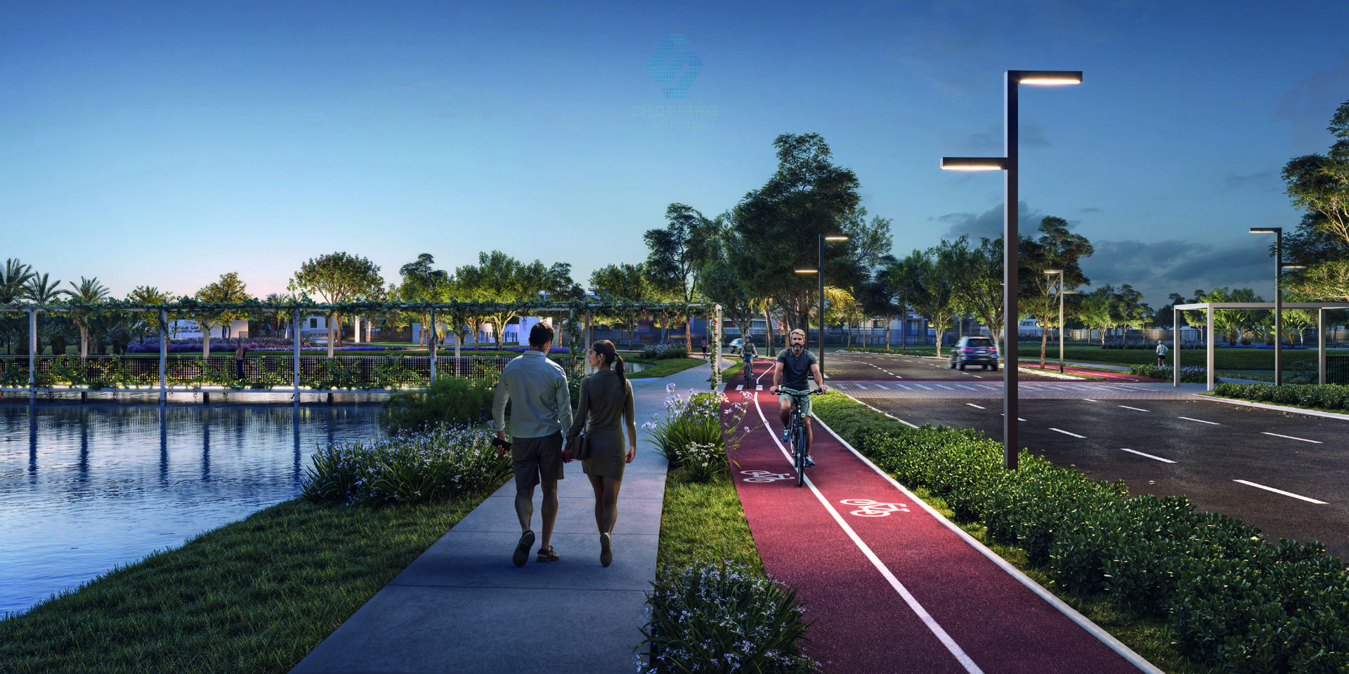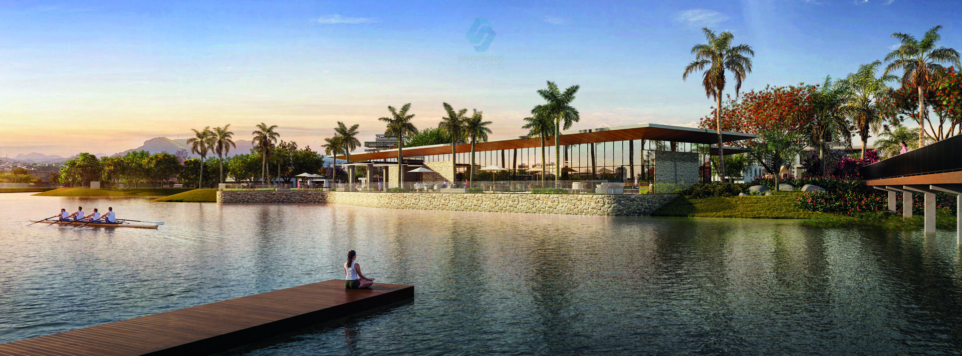 - Lago central com áreas de convivência e contemplação